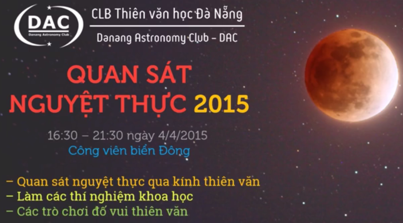Hãy cùng CLB Thiên văn học Đà Nẵng – DAC tham gia buổi quan sát nguyệt thực nhé!