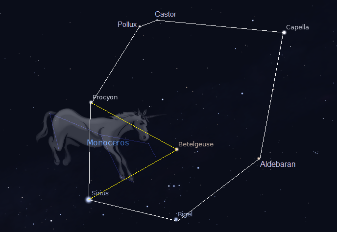 | Chòm sao Monoceros và Tam giác Mùa đông, Lục giác Mùa đông. |